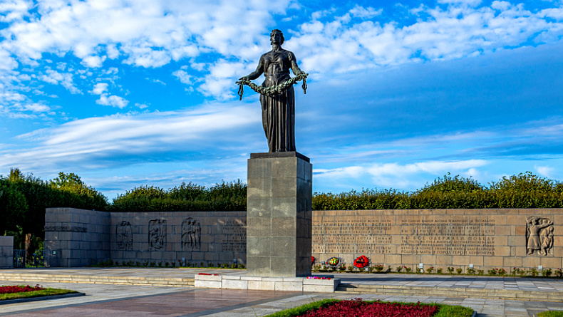 Во второй части нашей программы мы посетим Пискаревское мемориальное кладбище скорбный памятник жертвам Великой Отечественной войны, свидетель общечеловеческой трагедии и место всеобщего поклонения. Мемориал посвящён памяти всех ленинградцев и защитников города. Люди свято помнят о героях обороны Ленинграда, и строки из эпитафии Ольги Берггольц Никто не забыт и ничто не забыто, памятный текст на фризах павильонов Вам беззаветным защитникам нашим Михаила Дудина тому подтверждение.